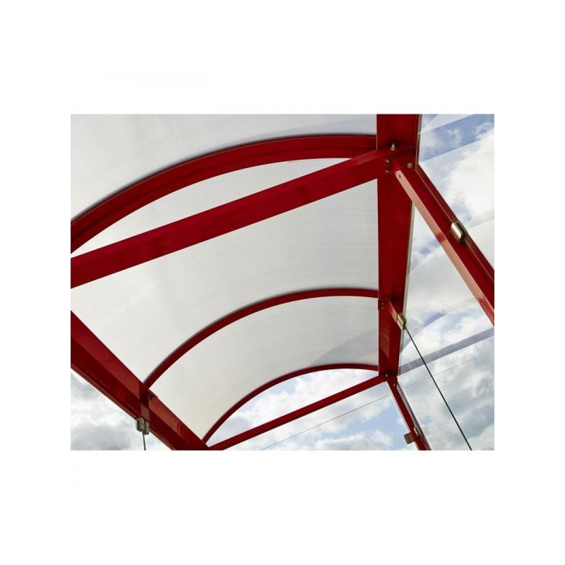 Roof and panelling: Anti-UV-treated cellular polycarbonate panels. 10 mm thick
