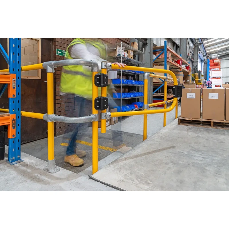 Self-closing gates are ideal for preventing falls and protecting workers in areas such as access ladders and stairs, walkways, warehouses, zone separation, and machine guards.