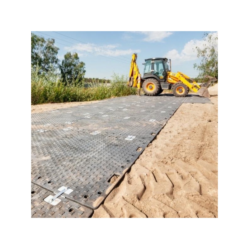 Ground protection mats can be successfully used for temporary access roads, parking lots or problematic places that require surface hardening. The assembly does not require preparation of the foundation, the plates can be placed directly on the levelled ground.