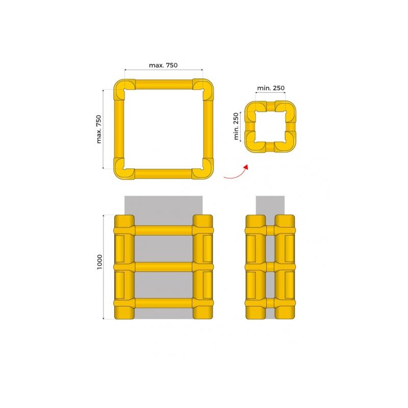 Suitable for columns with dimensions of 200mm x 200mm. Protection contains 1 element, which are placed around the column and connected through straps. Easy to install, does not require fixing it to the floor nor the column. The air chambers inside the modules help to absorb the energy of the collision.