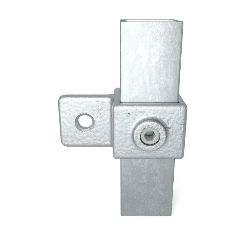 Collar Plate Double Side 90°. Panel fixing with two lugs also used for locking gates.