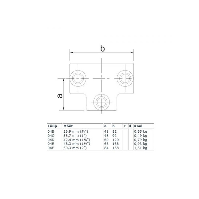 | Toru mõõt | A | B | BSP | Kaal (KG) |