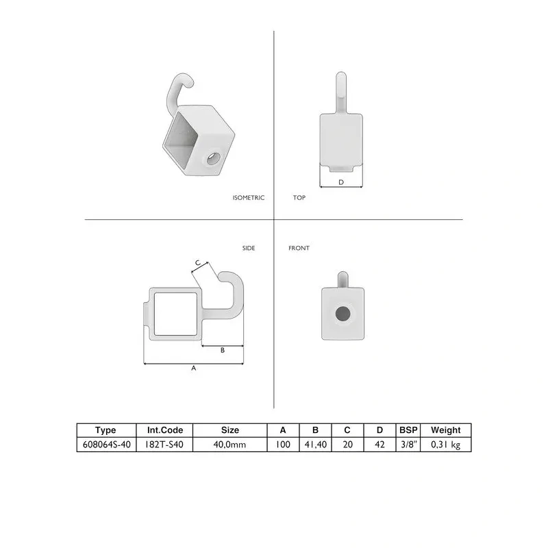 Hook twisted - 40 mm. Suited for making coat hangers and the like.