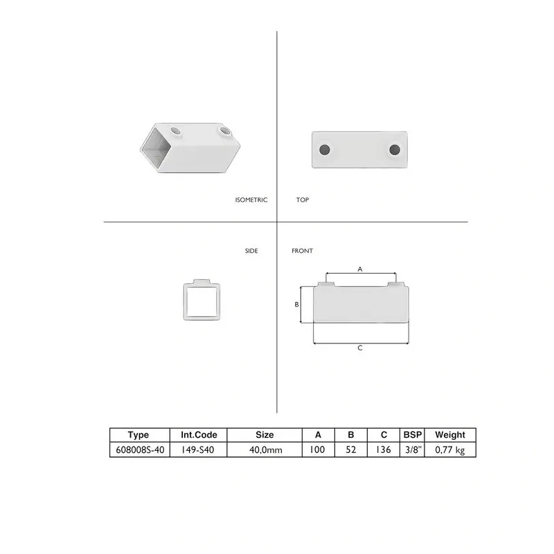 Suitable for square tube 40 x 40 mm