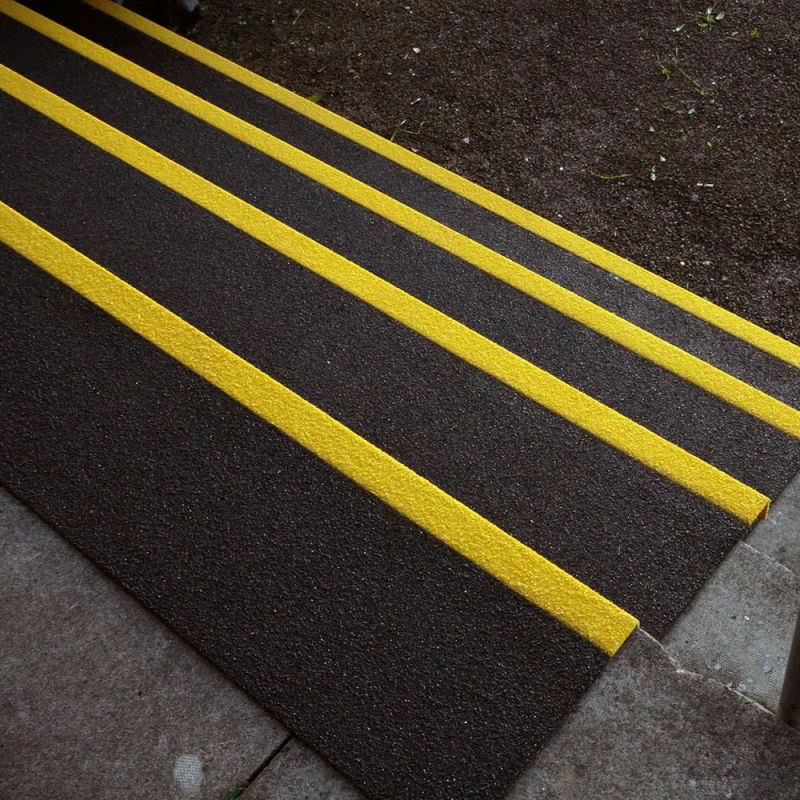 Libisemisvastane plaat on valmistatud vastupidavast korrosioonkindlast klaasfiibrist, mis on kaetud ränikarbiid teradega. Sobib mõõduka kuni väga suure koormusega treppidele.