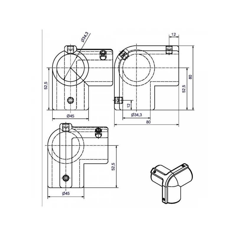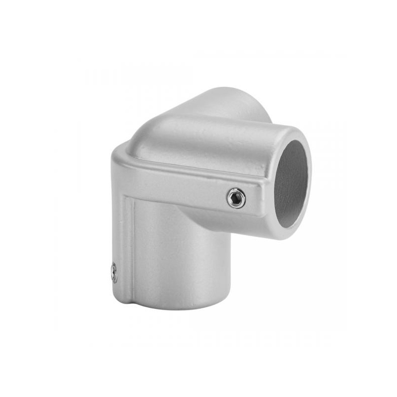 Ühekestaline toruühendus väljalaskeavaga toru kinnitamiseks nurka. Toruliitmik koosneb kahest eraldi osast, millest igaühel on seinakinnitusplaat. Paigaldusplaate saab muuta iga nurga alla. Seda toruühendust saab kasutada torude kinnitamiseks sise- ja välisnurkadesse. Viimistlus: töötlemata alumiinium