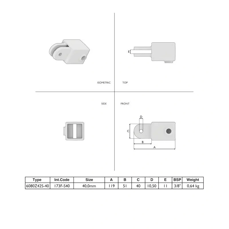 Lühike T-klamber- 40 mm. Moodustab ülemise ristühenduse kahe toru vahel. Toruklamber ei sobi horisontaalse toru jätkamiseks.