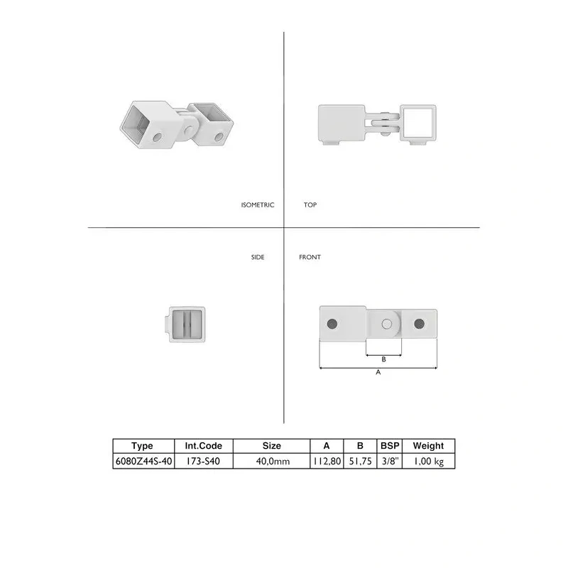 Tüüp 10, Otsa klamber - 40x40 mm torule. Sobib kasutamiseks lõpp ühenduseks, mitte kasutada tugialusena.