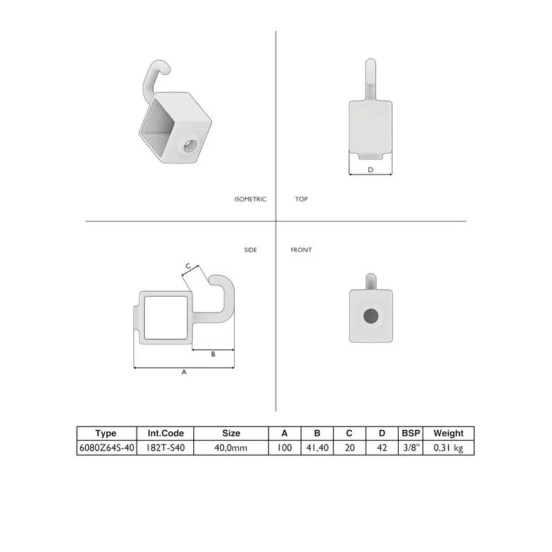 Sobib nelikanttorule 40x40mm